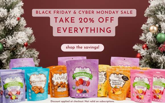 At Lovely, we consciously craft our products in small batches, taking great care to source only the finest, simplest ingredients. No artificial colors or flavors, non-GMO, no high fructose corn syrup or gluten either. Just pure deliciousness. So go ahead, indulge. Because everyone deserves the best of treats!