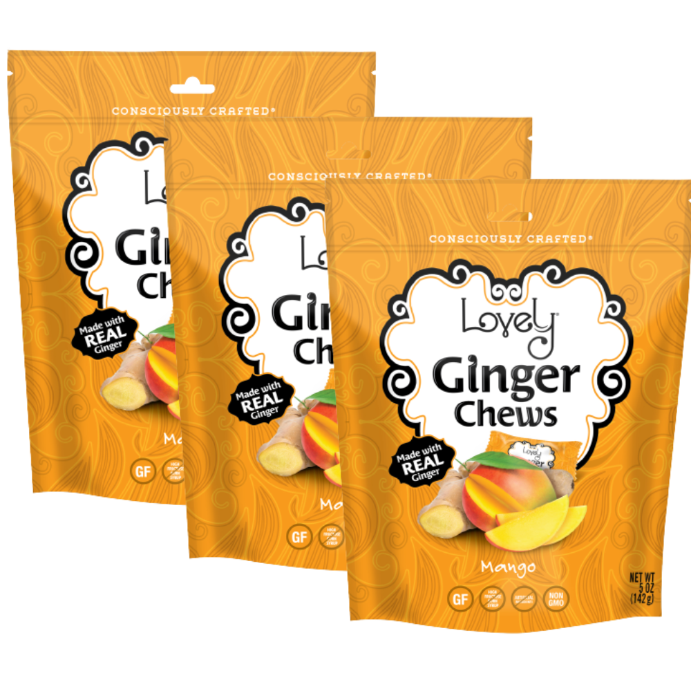 18- PURE & SIMPLE: Our Mango Ginger Chews are simply made with four ingredients- Cane Sugar, Tapioca Starch, Ginger, and Mango Flavor. Each ginger chew is only 15 CALORIES and individually wrapped making them easy to take with you on the go.